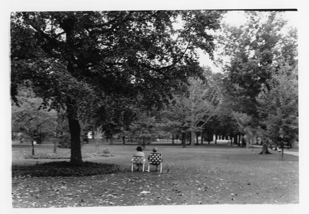 My first darkroom enlargement, black and white, at Tappan Square, Oberlin.